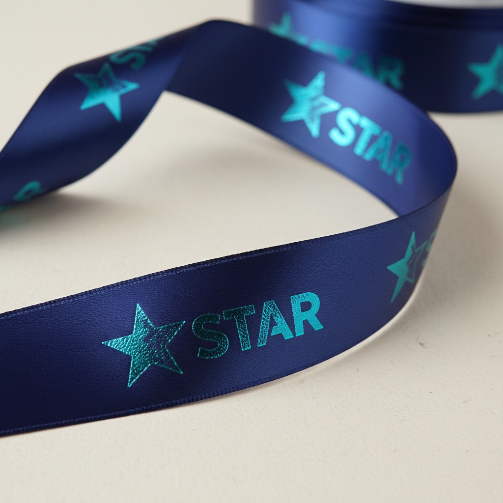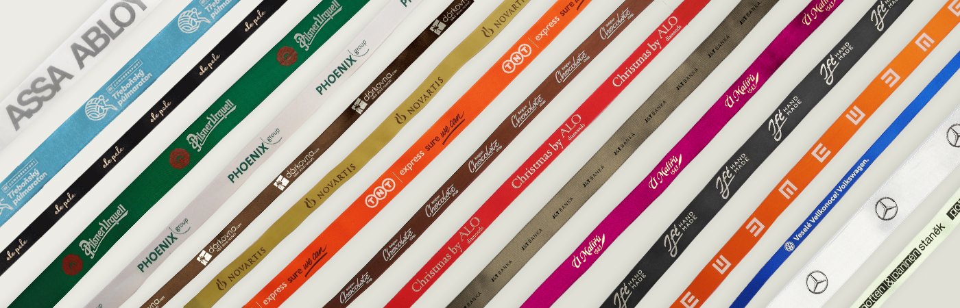 Používáme ražbu (termotisk), která umožňuje lesklé, matné i bílé provedení a tisk světlých barev na tmavé stuhy. Výsledkem je ostrý a reprezentativní potisk.